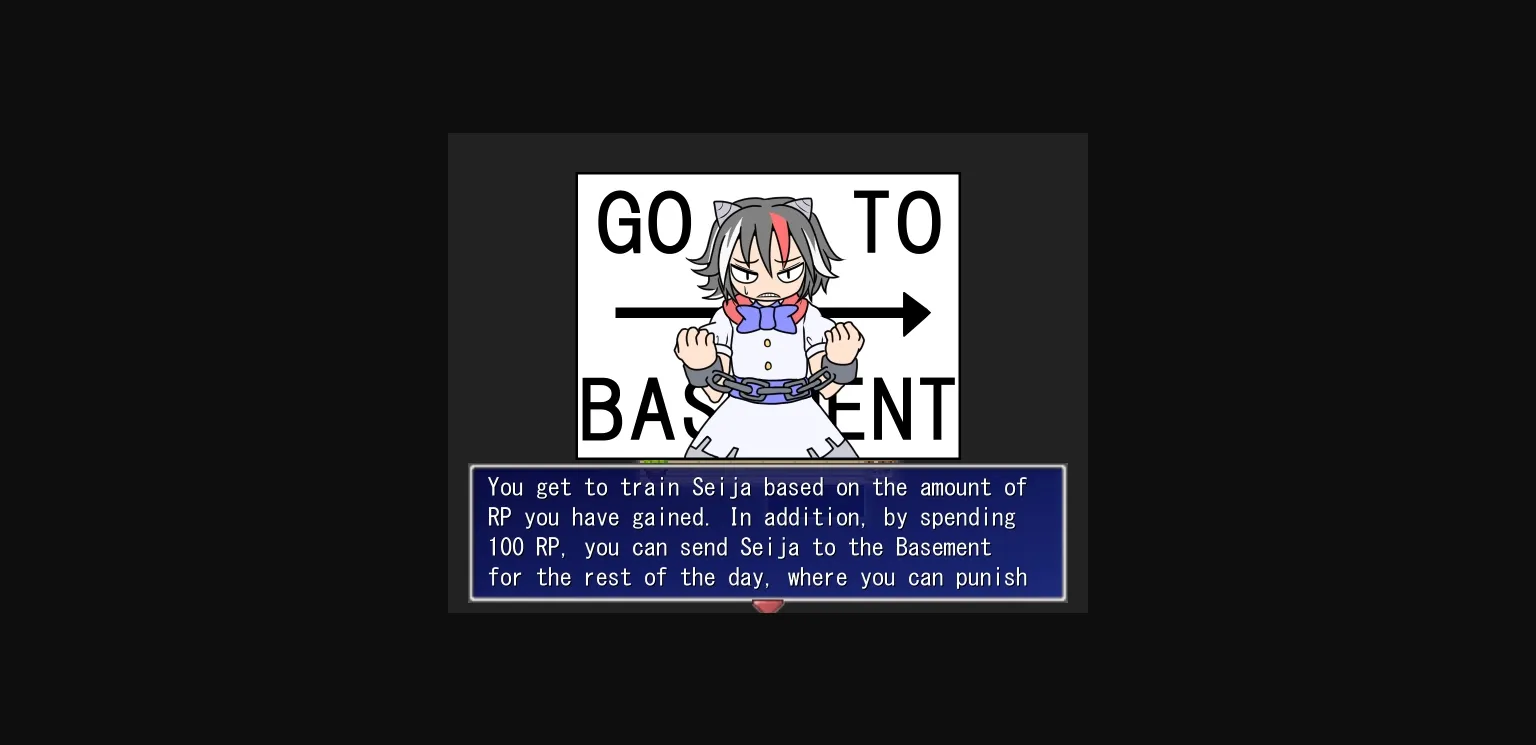 A game set in the Touhou universe, you take on the role of a freelance youkai hunter who has managed to capture a notorious troublemaker – Seija Kijin! You throw her into your sex dungeon (which is conveniently located in your house), but before you can decide what to do with her, a certain powerful figure arrives with an offer you cannot refuse… And so you have to live with Seija in order to try to reform her! And no matter how much she kicks and screams, it will be up to you to choose the sexual punishment she will receive for her constant mischief!