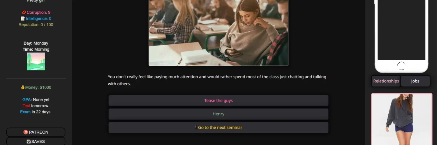 This is a lifesim game where you play as a girl trying to make it in life.