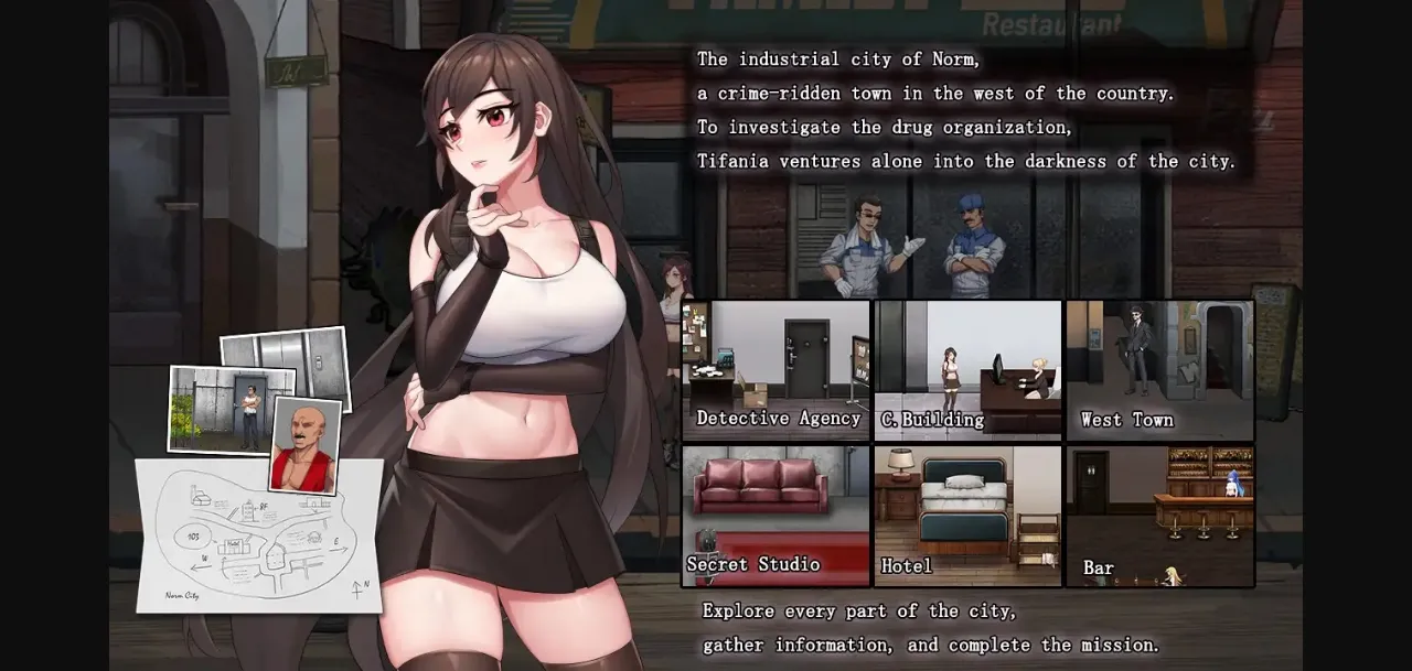 The objective of the game is to investigate and dismantle the criminal organization. Unlike the previous game, this time, Tifania can fight strong enemies head-on without being overpowered one-sidedly. As an RPG element, you can earn experience points and money in the city to strengthen characters and equipment, as well as purchase items. H-status is recorded based on the player’s actions and affects the achievement of the ending.