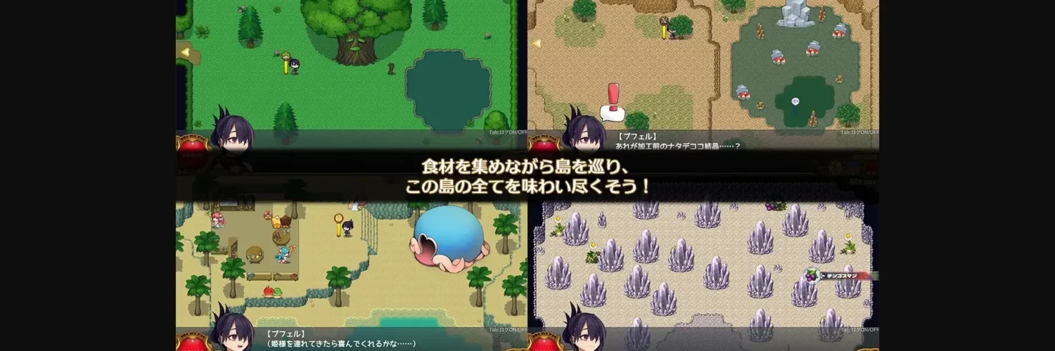 Eva, the half-dragon, half-human princess. Pfel, the steward, who serves Eva. They visit a mysterious isolated island infested with monster girls, and Pfel collects food for Eva on the island. However, there is a secret hidden on the island.