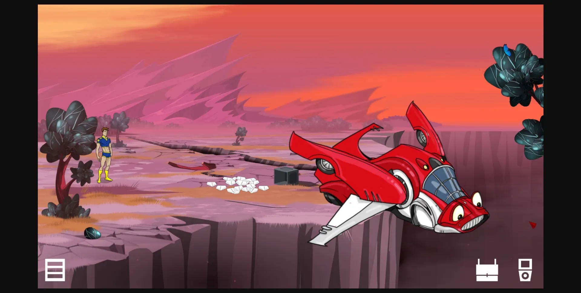 Escape from Pleasure Planet is a gay-themed science-fiction adventure game with bright colourful graphics, a fun story and character art by Joe Phillips.