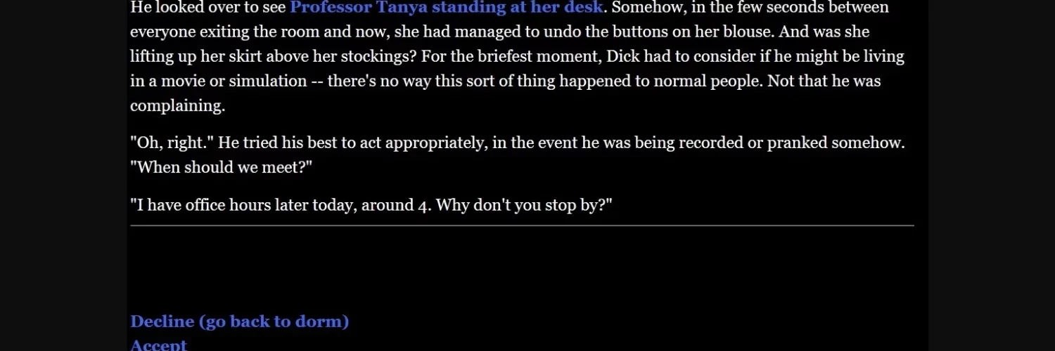 Text-based, Male protagonist, Multiple endings, Real porn, Anal sex, Lesbian, Teasing, Incest, Gay (avoidable), NTR (avoidable), Trap (mostly avoidable), Pregnancy (potentially avoidable)