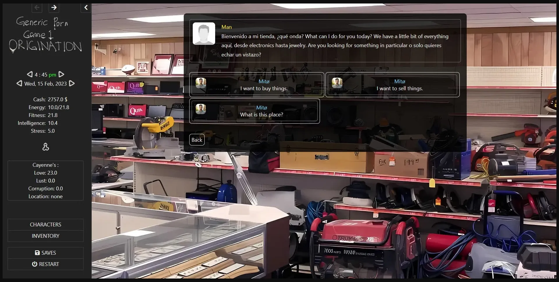 - The interaction mechanics have been changed. It was bugging me that when you chose to "talk" to someone, time would automatically skip forward, and love would increase. Even when you had to talk to them for event purposes, this still happened. So I updated it so this is no longer the case. Now you can pick "chat" or "small talk" to increase love and skip time forward. I’ve also reduced the time for this from 1 hour to 30 minutes. From my initial testing, everything looks fine, but it hasn’t been thoroughly tested. This currently applies to seven characters: Eva, Lukas, Kenzie, Lila, Allie, Eethan, and Liya.