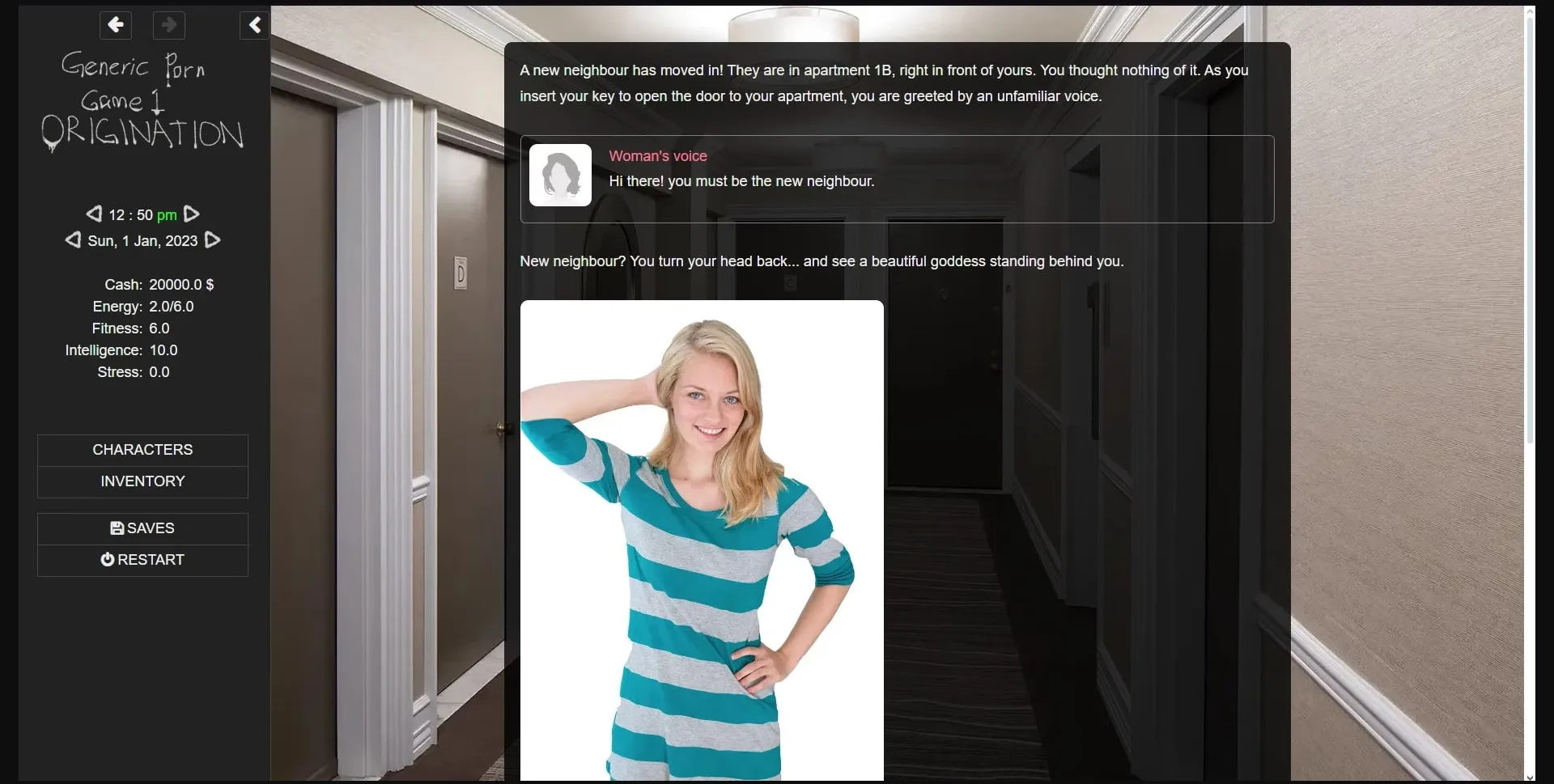 - Added one new scene at the hotel. This can be accessed by talking to her and choosing "Go out."