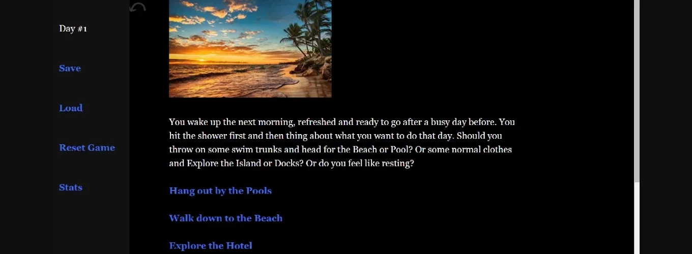 This is my second game I’ve ever created, so I appreciate all feedback towards this project. This one is much more free-roam oriented and less linear than my previous game. The game currently has 15,000+ words, 6 main character sex scenes, 3 random events and 2 casual encounters.