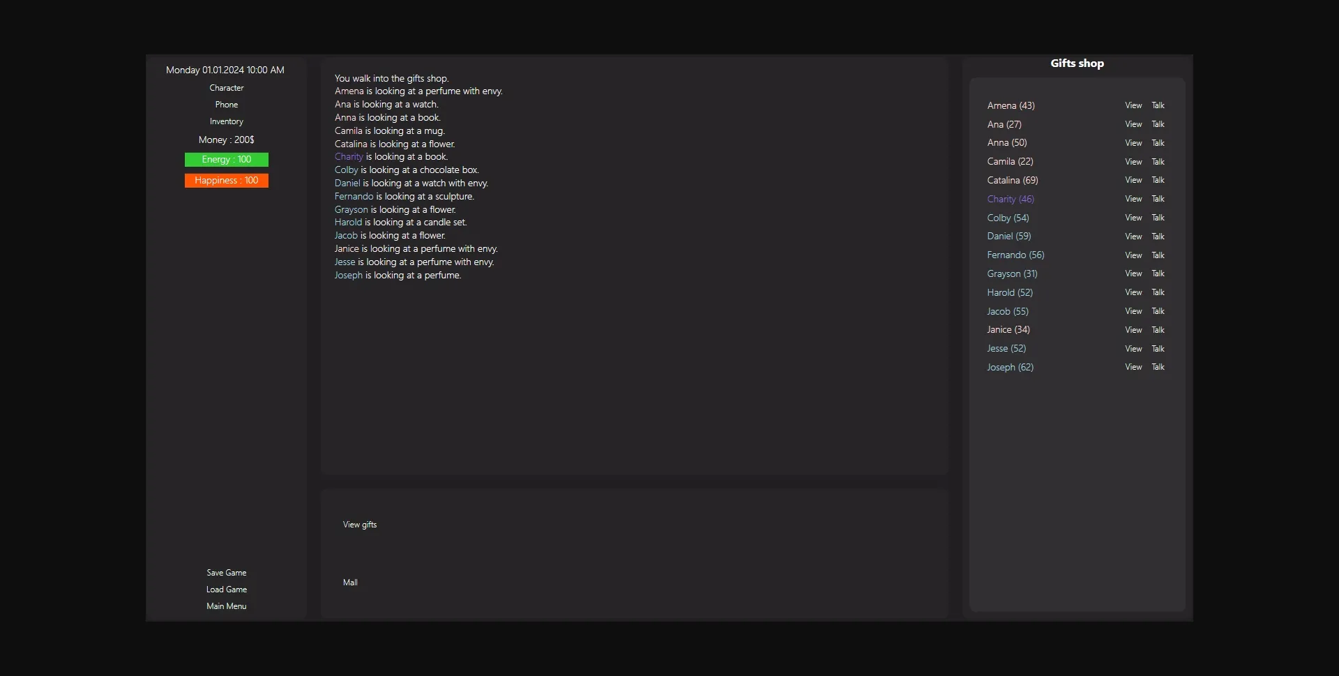 I am developping an adult game called LifeAdventures. In this game you will have to make money and manage stats such as energy and happiness. You will be able to make friends, lovers or even enemies. Some of the NPCs are unique, others are randomly generated to offer a new experience everytime you launch the game !