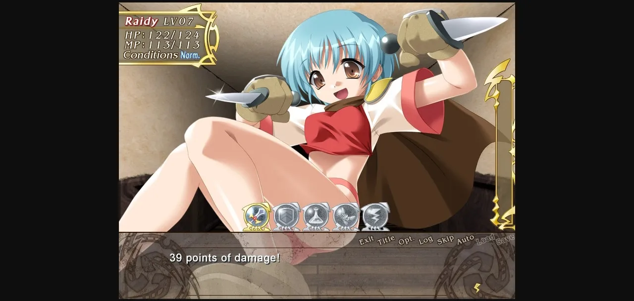 "Ugh… desert travel is terrible on the skin, let me tell you! Why did I ever choose to come this way… If I don’t find water soon it’s going to be troublesome. Wait, what’s that in the distance – an oasis?! And a town next to it! Civilization at last…" I am Raidy, wandering the continent of Else as a swordfighter. I can freely bend the power of thunder to my will, so people have taken to calling me the "Lightning Warrior". I’m traveling far and wide to improve my fighting skills and search for clues about my past, and my mysterious power over lightning. After defeating the monsters in the Cubust tower in my last adventure, I left the village of Sadd behind and continued on my journey. My travels have taken me across the desert to the oasis town of Lake Blue. Looking forward to a break after the long and dusty journey, I settled in for the night at the local inn… only to have its peace shattered by the cries of the young, beautiful innkeeper! I rescued her from her mysterious assailant, to learn that the town was living under constant fear of attack from a gang of marauding bandits led by a cruel woman called Jammy. It seems my vacation won’t be so uneventful after all! I set out to find information on the gang’s hideout, and a new adventure begins…