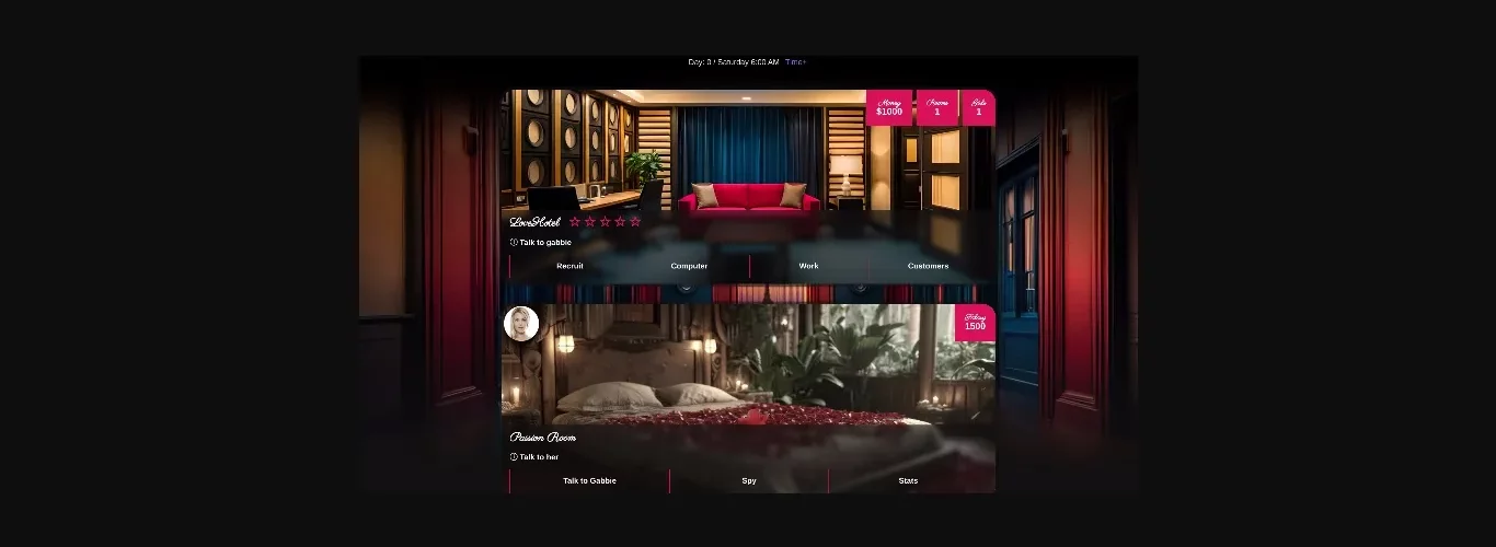 You play as a man who inherits a rundown love hotel. As you take control of the establishment, you quickly discover that the hotel is at the center of various illegal activities. Your mission is to ensure the safety of your employees, recruit new girls, train them, help them resolve their personal conflicts, and manage the clients. Your ultimate goal is to transform this love hotel into a little paradise despite the challenges ahead.