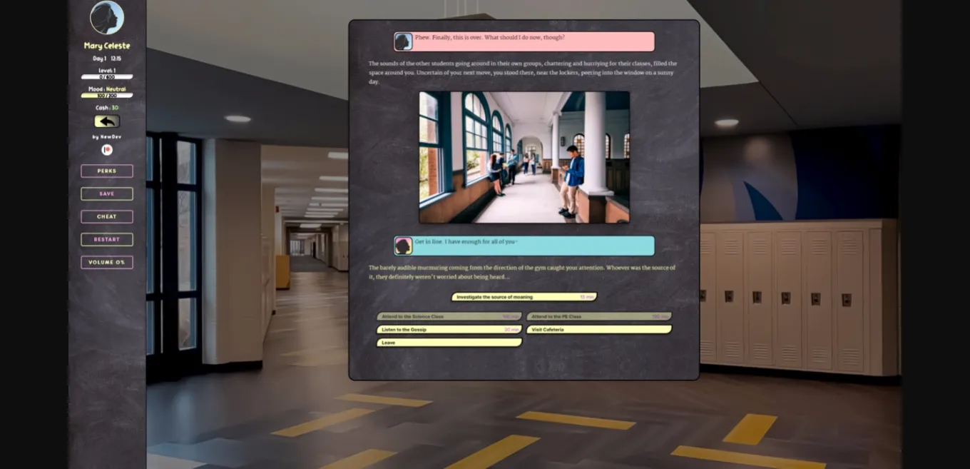 Lustful Insanity is a Sandbox Female protagonist game that primarily uses videos with sound instead of GIFs. You begin by creating your own customizable character, who will find herself at risk of getting expelled from the school in her last year, all the while being surrounded by a bunch of hot men and women. And it is up to you to keep her from getting carried away and to ensure that she keeps her needs in check.