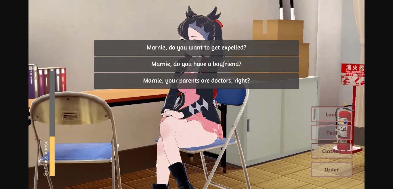 Parody of the visual novel created by JSK Studio (Original title: カンニング少女の追いつめかた), starring Marnie from Pokemon Sword & Shield. The rendering was done using Chara Studio by Illusion, and the models authors were credited in the game credits.