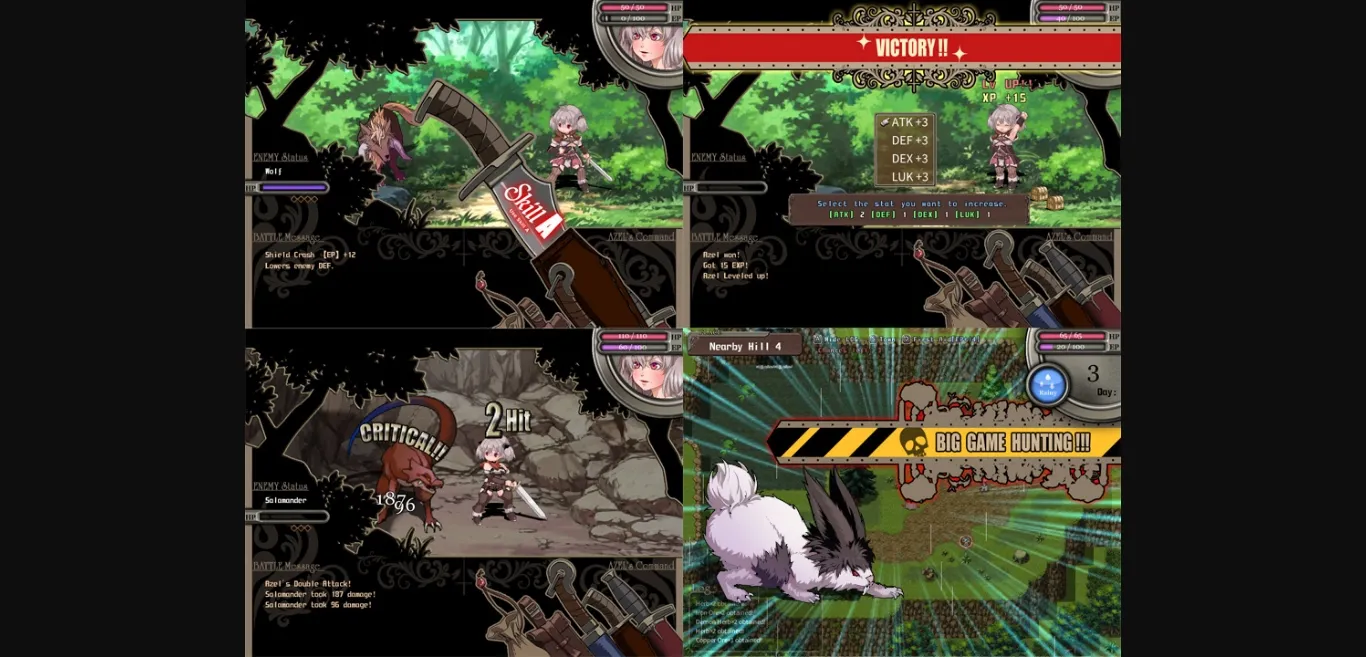 Searching for the demon beast that branded her, the hunter girl, Azel, reaches that place.