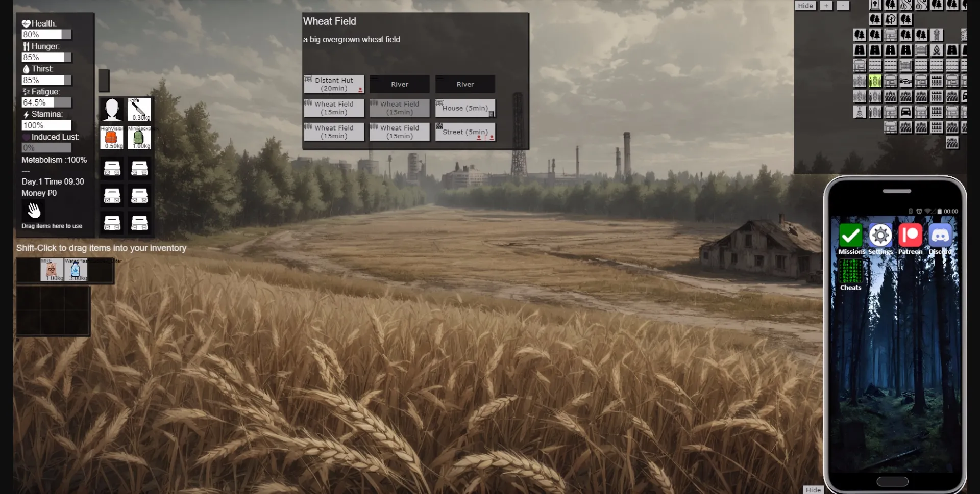 The game borrows different aspects from games such as: Escape from Tarkov, Pathologic, Fear and hunger, etc..