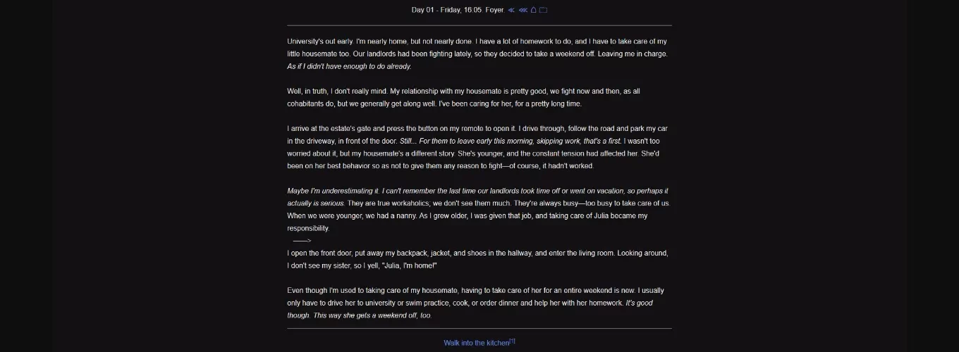 The main story will be very vanilla; Sweet, and loving. There will be very little choices and paths, I’m focusing on writing the main story first. There might be some bad ends or short alternative paths, but don’t expect too much "gameplay".