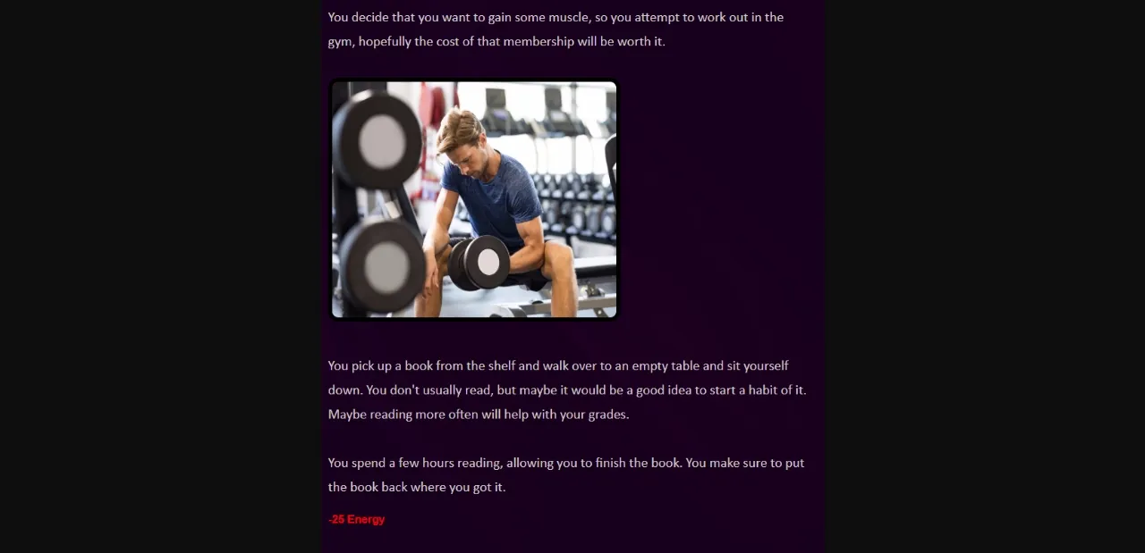 – Patched text about reading while working out in the gym.