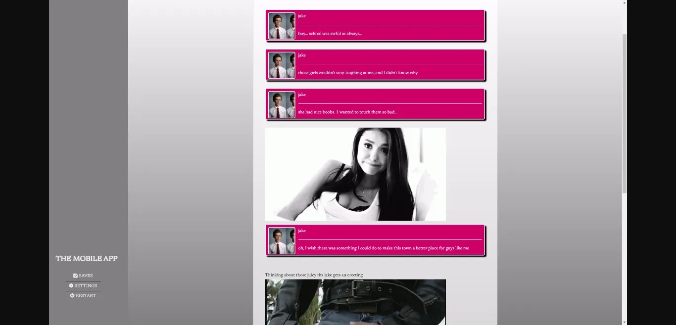 You play as Jake, an introverted nerd who has a lot of sexual fantasies.