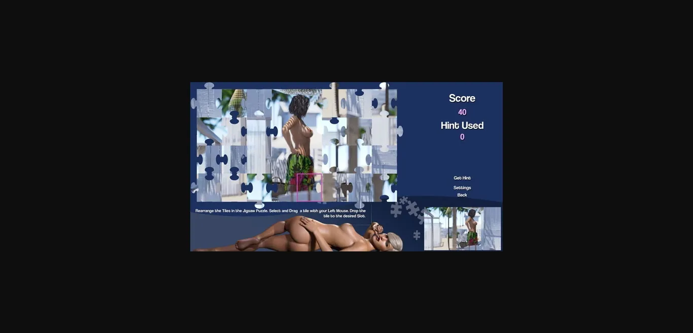 - HINT system: IF you are stuck, just use the HINT button, this will highlight the correct place for a selected puzzle. This comes at a price, each time you use it, 2 points will be deducted from the points you get for completing that image.