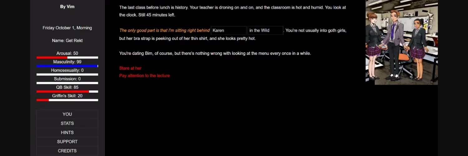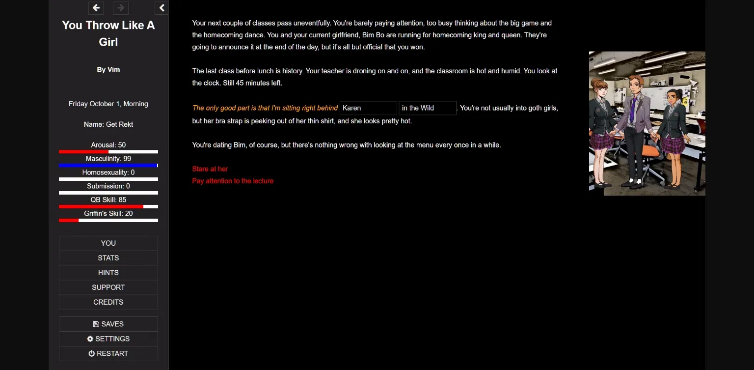 - You can now choose to have Morgan spank you during detention instead of the Coach