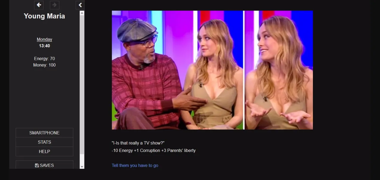 – Added three new variables: beautyBoost, fitnessBoost, intellectBoost. All of them are being used in crime mechanics. They are changing every turn and have no min. or max. borders.