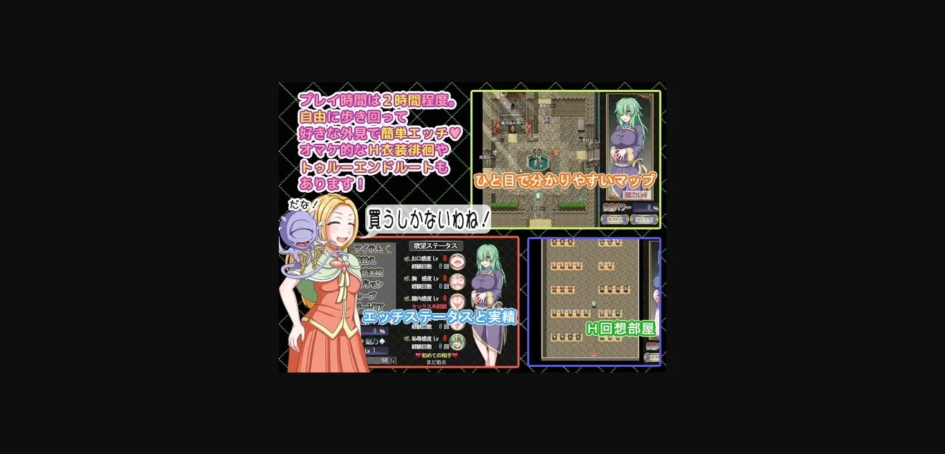 2d game, 2dcg, female protagonist, ahegao, anal sex, big ass, big tits, corruption, cosplay, creampie, oral sex, multiple endings, multiple penetration, groping, group sex, footjob, internal view, handjob, sexual harassment, prostitution, slave, teasing, titfuck, adventure, fantasy, monster