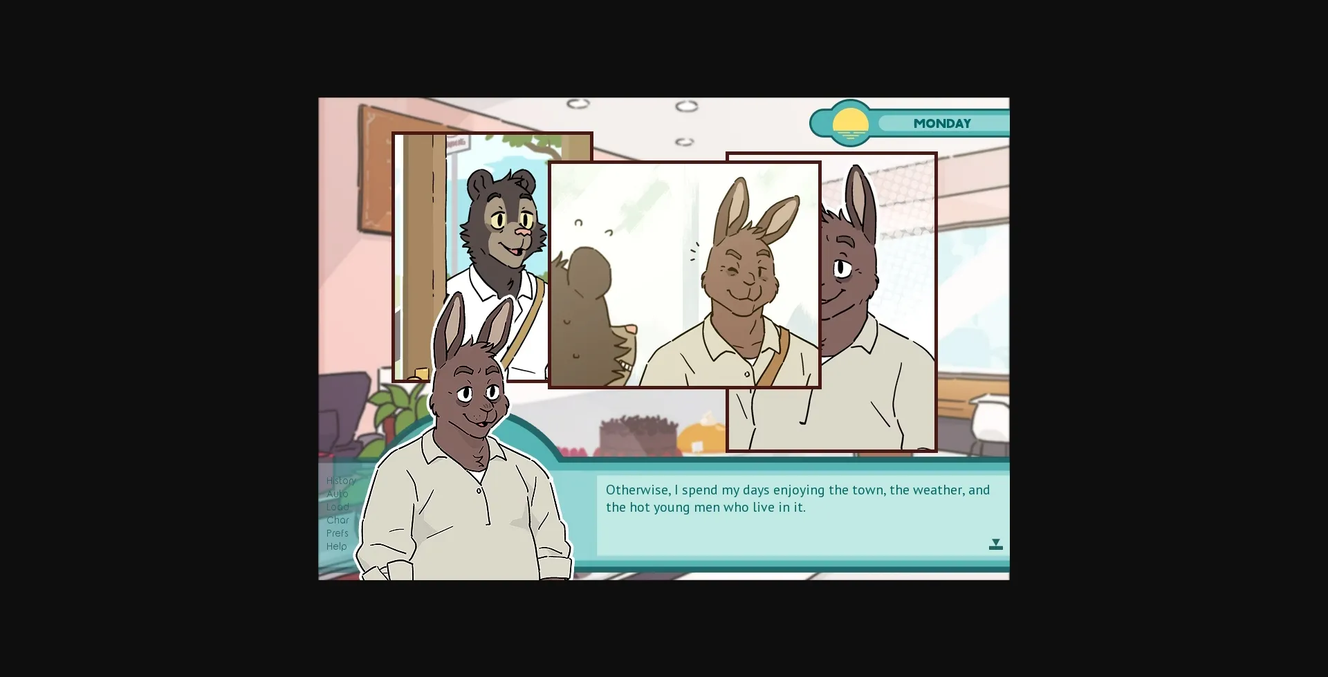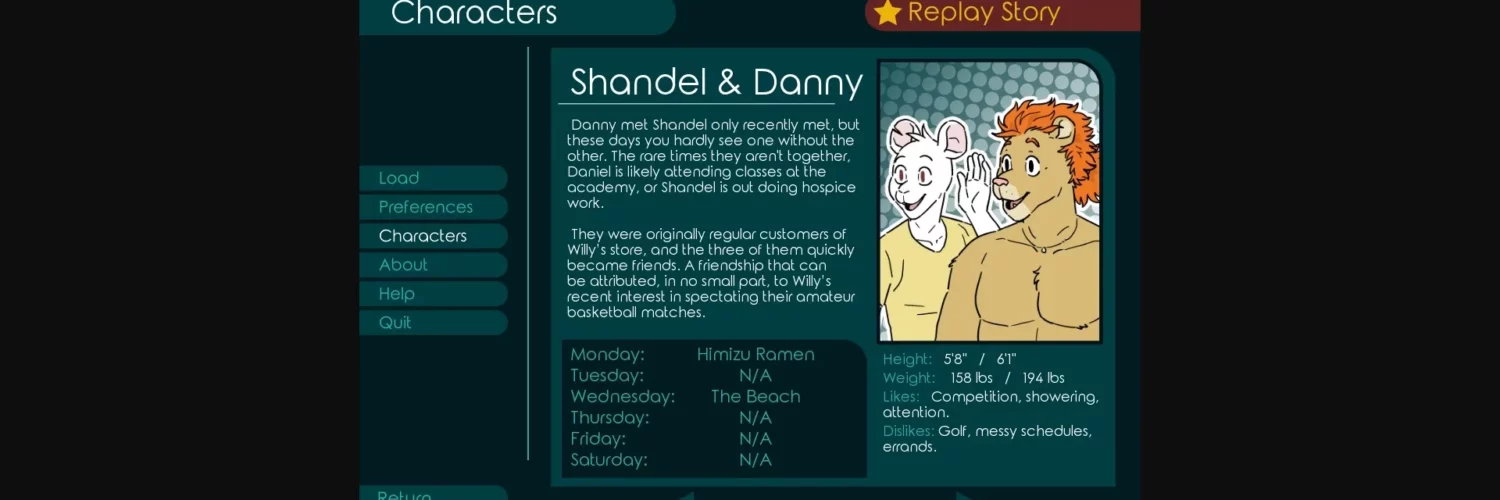 In the idyllic town of Cape Bottom Sail, Willy the Bear finds himself with a week off and nothing to do. You’ll guide him through his time off by visiting the town’s various locations, meeting his friends, finding items, and by simply enjoying the peaceful and serene atmosphere of the cape. And if you’re lucky, you might just get some action while you’re at it.