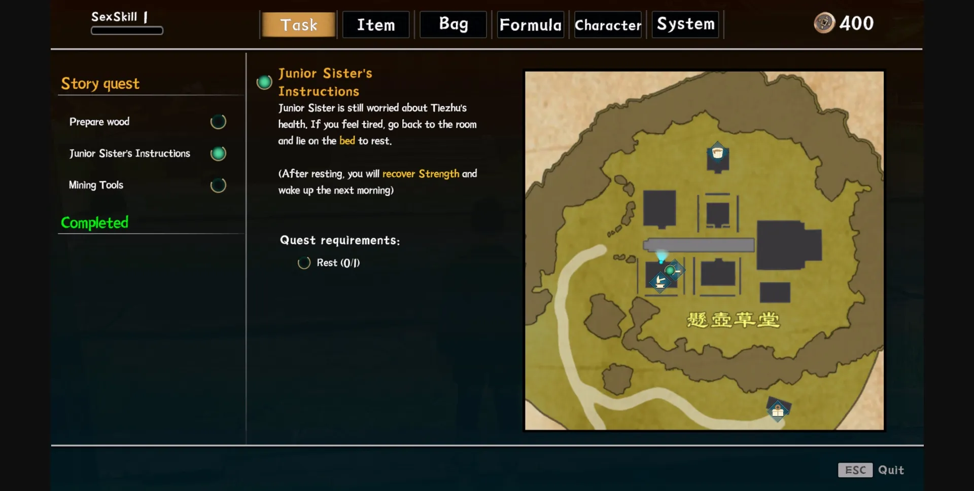 5. When the chicken essence task is not completed, the interactive options are no longer hidden.