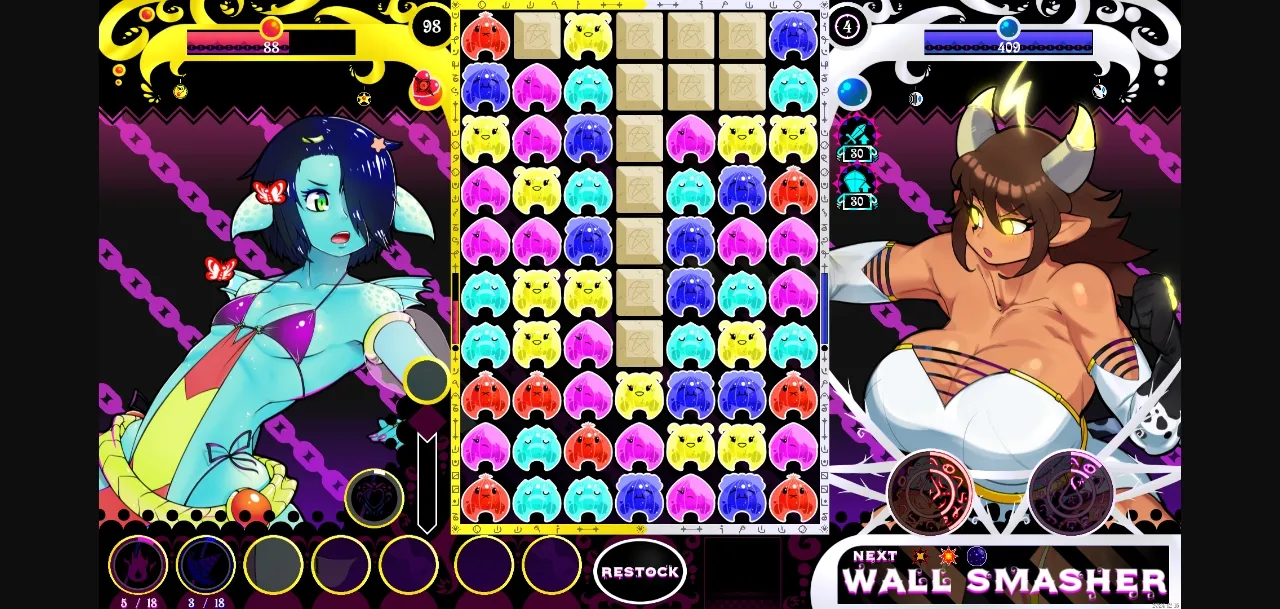 Battle Monstergirls through a never seen before blend of Match-3 puzzles and Shoot ’em up!