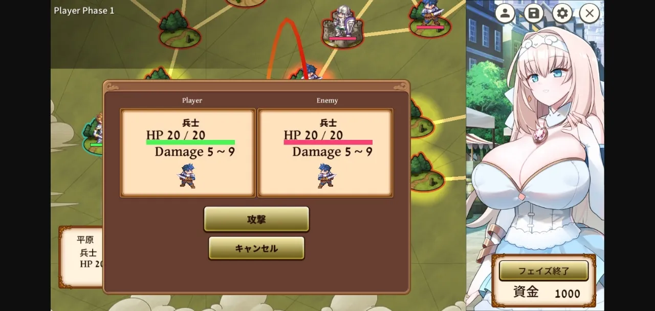 Turn-based strategy SLG. You move soldiers as units and battle with the enemy army.