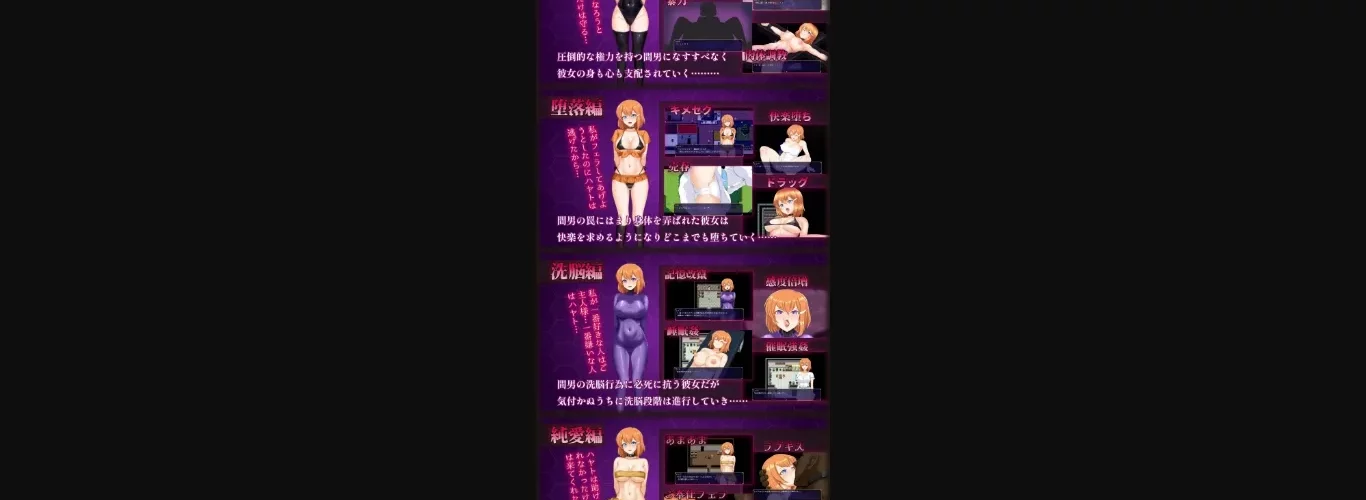 2D Game, 2DCG, Ahegao, Anal sex, Big tits, Censored, Cheating, Corruption, Creampie, Fantasy, Groping, Group sex, Internal view, Interracial, Japanese Game, Lactation, Male domination, Male Protagonist, Mind Control, Monster, Multiple penetration, Netorare, Oral sex, Pregnancy, Prostitution, Rape, Romance, Sex toys, Sleep sex, Tentacles, Titfuck, Trainer, Turn based combat, Urination, Violation, Vaginal sex, Virgin,