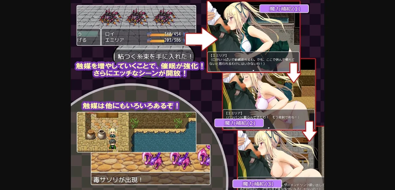 Sex scenes are unlocked by obtaining items from defeating monsters.