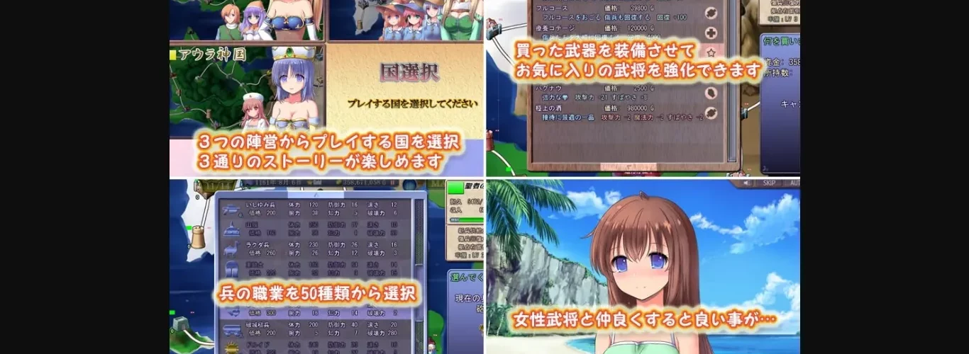 2DCG, 2D game, Censored, Japanese game, Voiced, Animated, Strategy, RPG, Simulator, NTR, Harem, Male protagonist, Fantasy, Pregnancy, Vaginal sex, Oral sex, Creampie, Rape, Titfuck, Slave, Teasing, Groping, Group sex, Multiple endings, Corruption, BDSM, Handjob, Ahegao