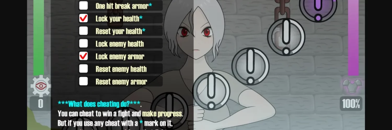 - Enter any fight, mouse over *cheat tag on the upper left corner.