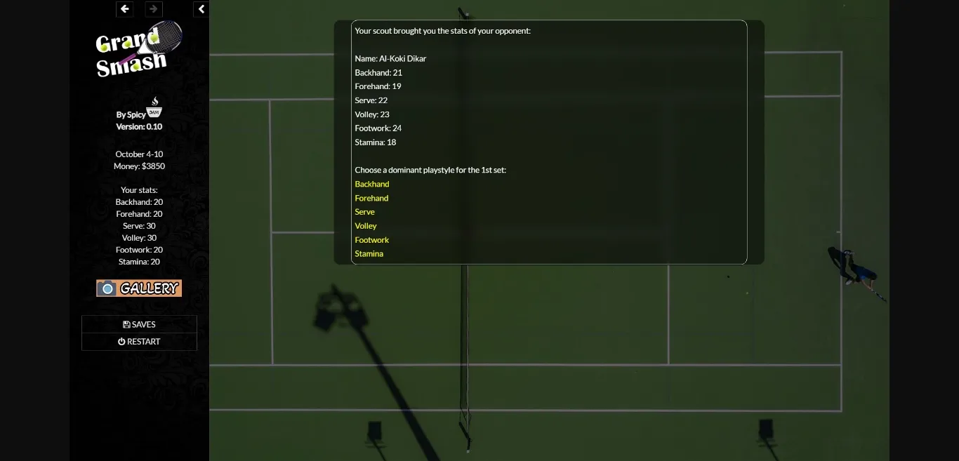 v0.80 – US Open – Just try to place to ball to the side where there is more space. In the game, you are a right-handed player, if the ball comes to your left side, use backhand, if it comes to the right side, use forehand.