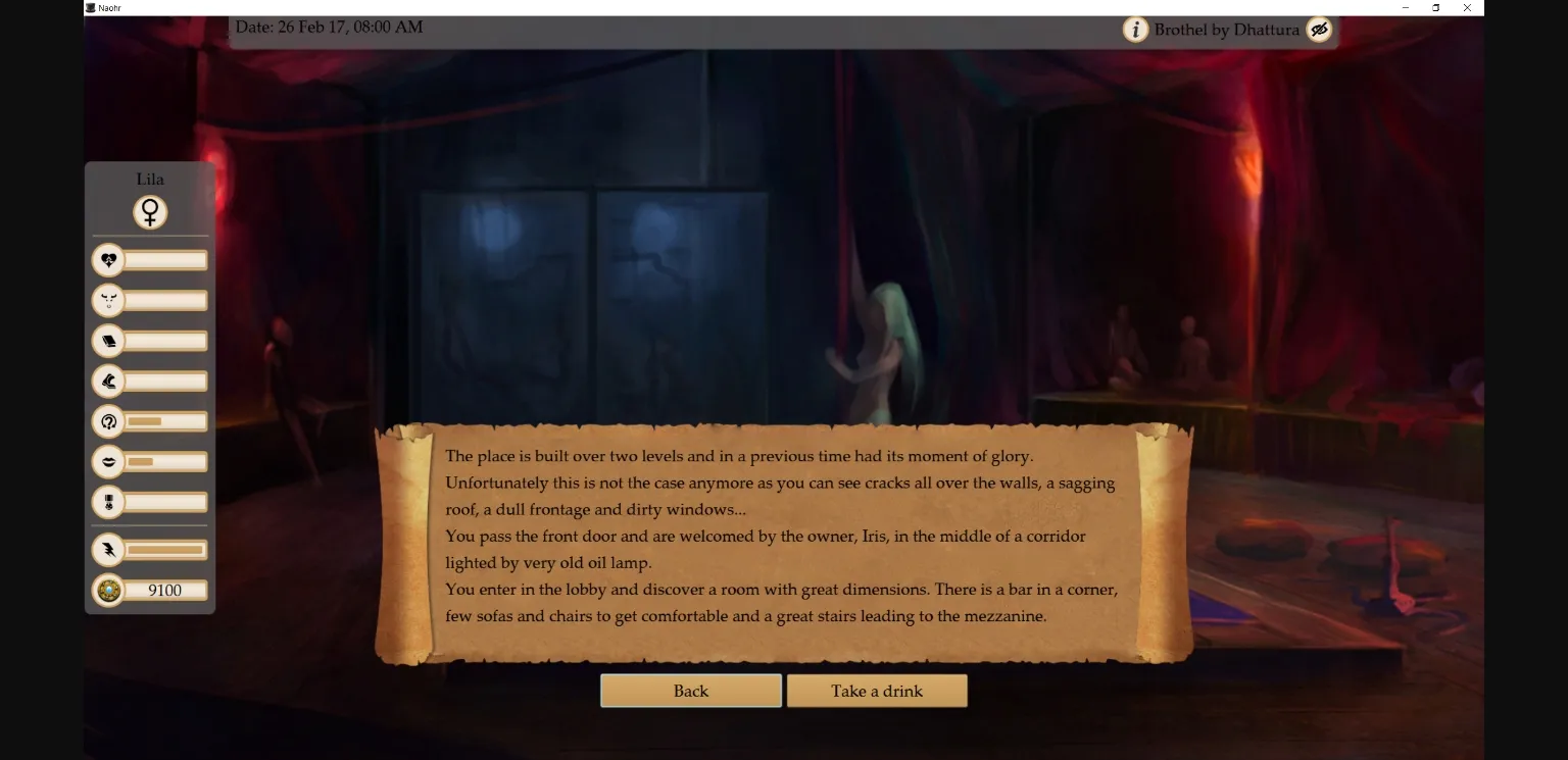 It will focus on the sex workers and let you be one of them. You will start as a whore, working in a dull brothel and slowly climb the sex ladder, dominating people as a Dominatrix or influencing the mighty as a Courtesan.