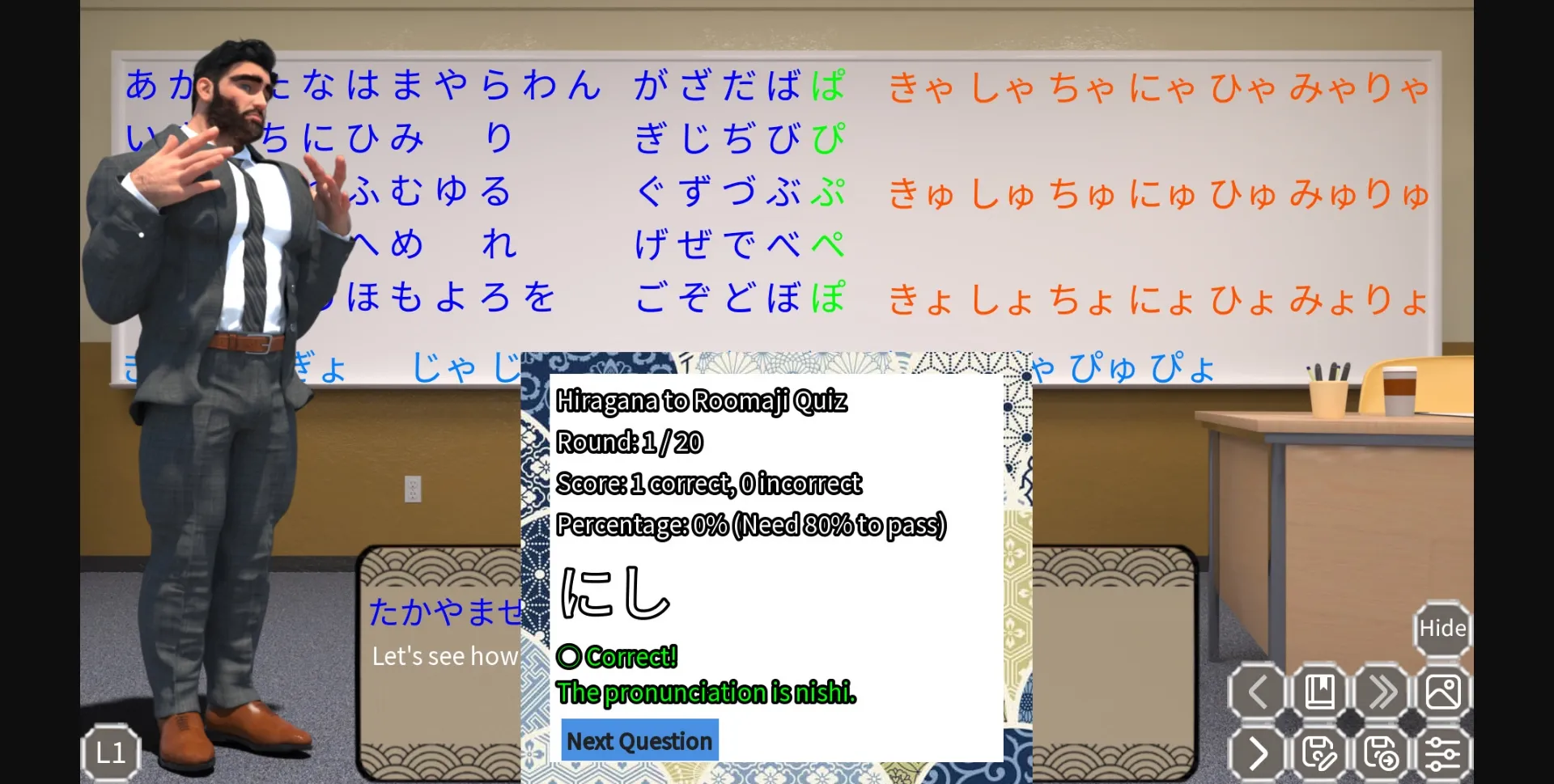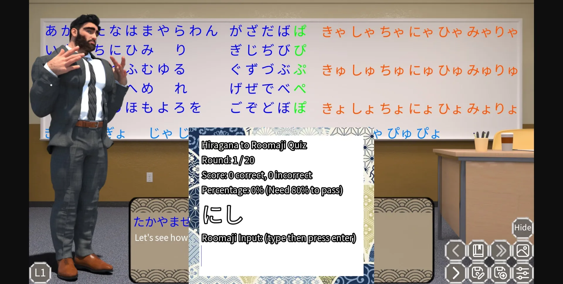 Quizzes (get 80% or more to remove some of Sensei’s clothes!)