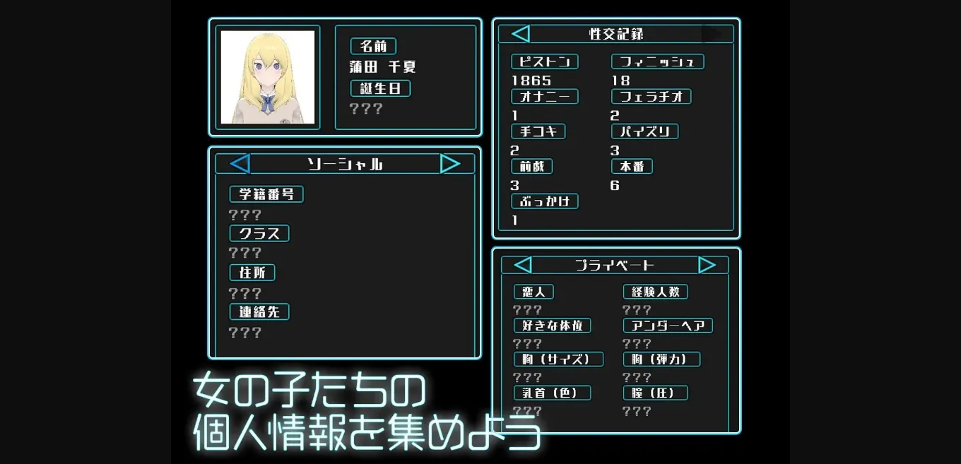 A collector simulation game in which you trade data on girls.