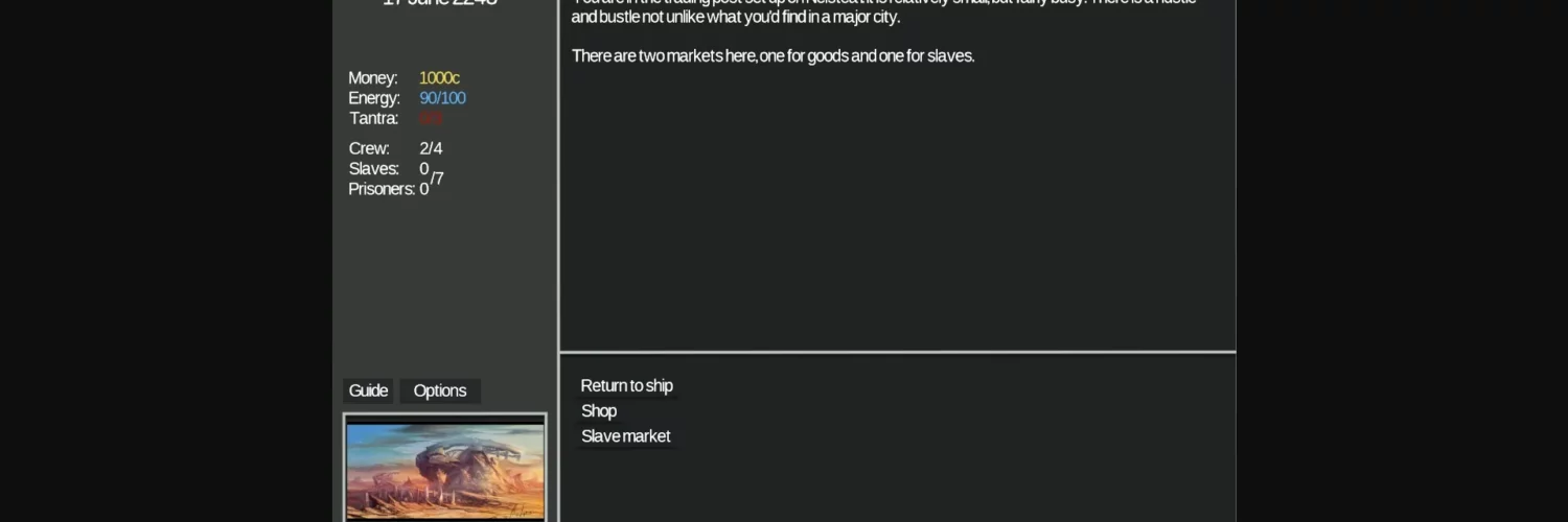 So found this game, it’s free, incomplete and the Patreon is mostly a tip jar. So the game is basically you are a slaver and after Earth gets introduced to many Alien races, governments fall and you take advantage of the chaos and become an intergalactic slaver or some shit like that. Anyways it plays similarly to TiTS and CoC with more focus on slaves and such. Currently no furry content from my playthrough but I didn’t play for long or explore the galaxy all that much.