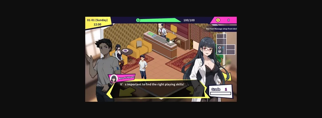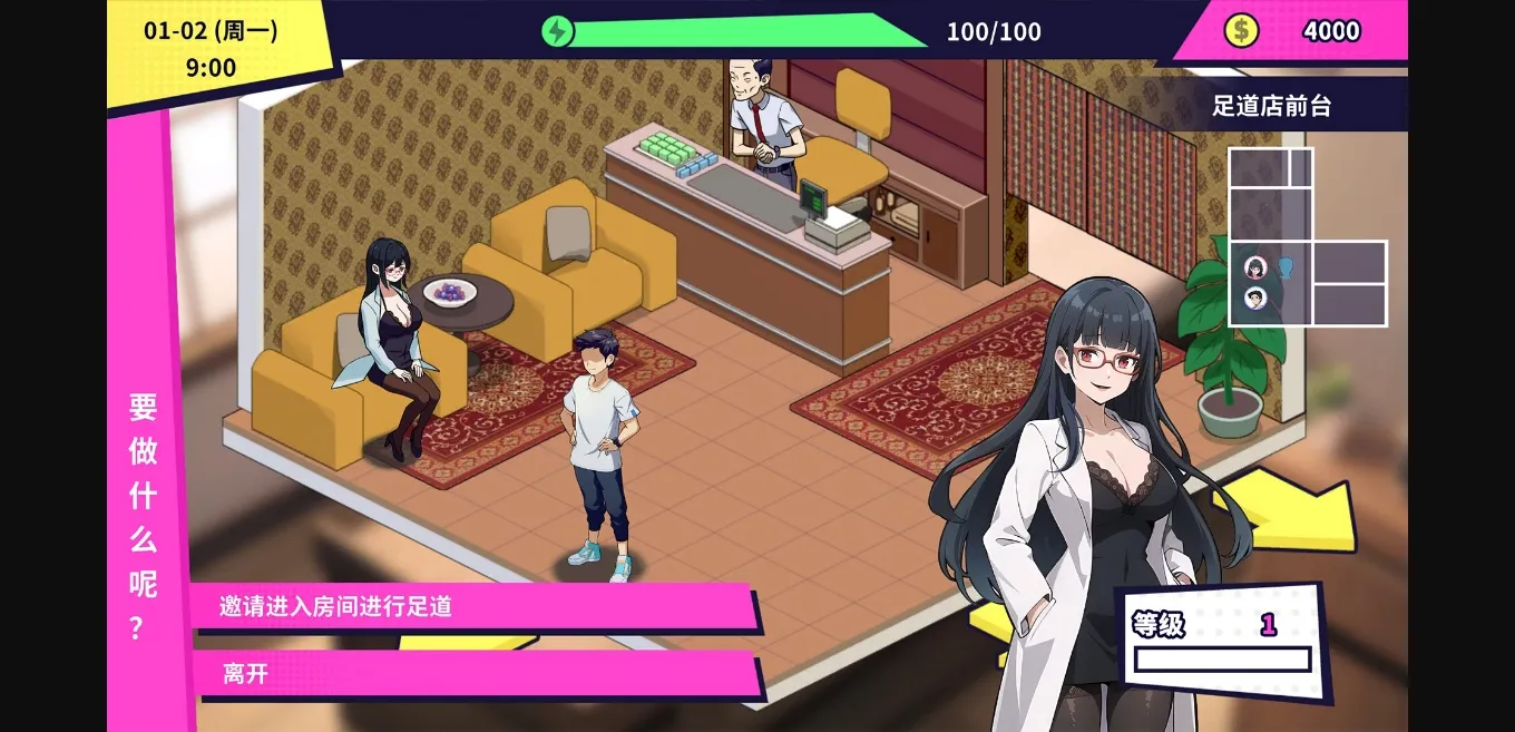 ● The map is free to explore, each building has its own function, home, foot massage parlor, hotel, convenience store