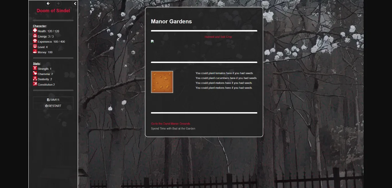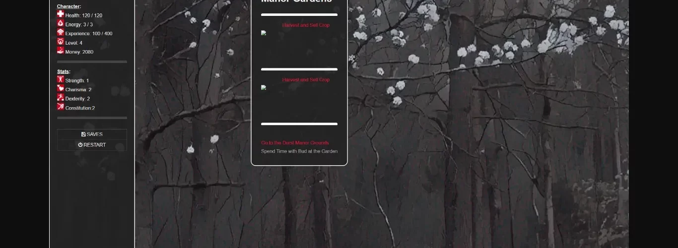 Added in a new sanity system. There are new unique scenes that have a chance of triggering when you sleep with low sanity. If you get four scenes it’s game over.