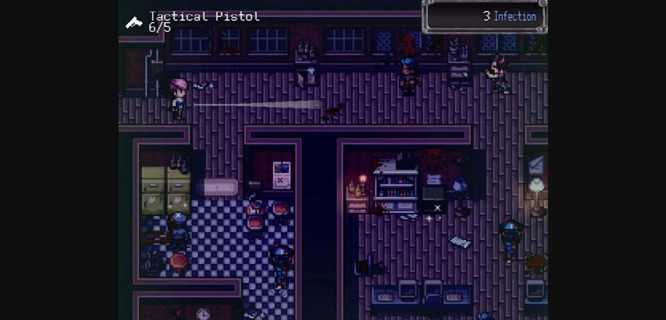 * Enemy health has been updated and weapon specs have been accordingly adjusted. Hounds have 1 HP, Runners have 2 HP, Walkers are now 3 HP, and Crawlers have a beefy 4 HP. Pistol damage is 1, Improved Pistol damage is 2, Rifle is 3, and Shotgun is 5. All melee weapons have a damage value of 9.