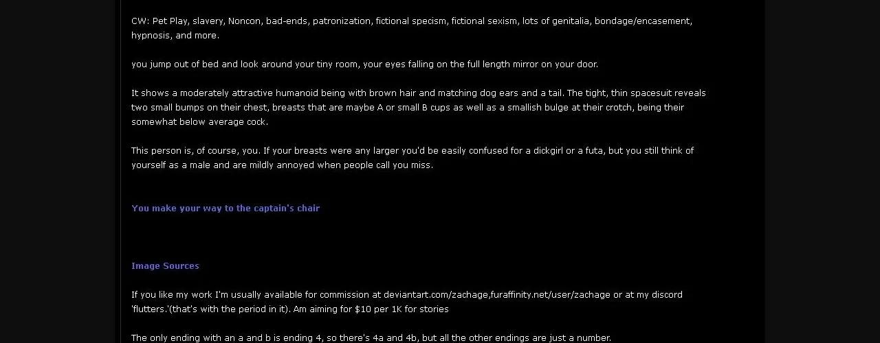 There are 17 endings, with one image for each ending and six non-ending images. The story itself is 26,000 words and about 50-60 passages. It’s also technically a Trials In Tainted Space fangame, though only in the sense of one character and a few terms like Ausar and Kaithrit. I know i’m in the minority, but I fell in love with riya from her first scene and have always been sad there wasn’t more. I’m a total ‘forced humiliation/embarrassment/degredation’ slut and her casual specism and strong patronization was really nice, so I made a game all about that!
