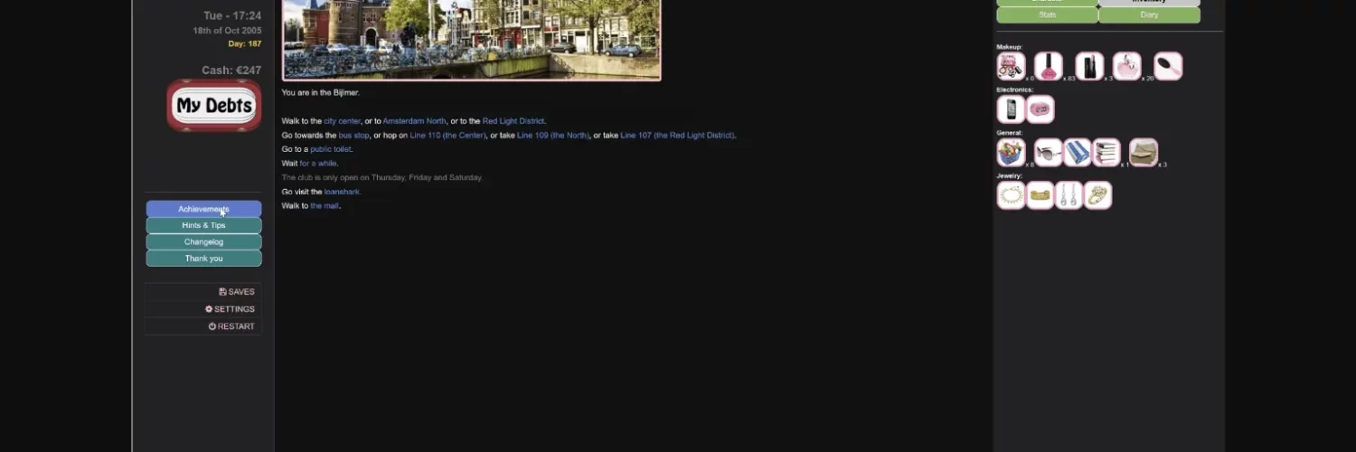 – YES, apart from some small stuff, I plan to open up Paris in this update. Obviously, it will not be finished, nor will it be hours of playtime once I open it, but it will be possible for Lizzy to run away to Paris instead of Amsterdam once this update is launched. Paris will have a lot of different stuff happening. Mark my words!