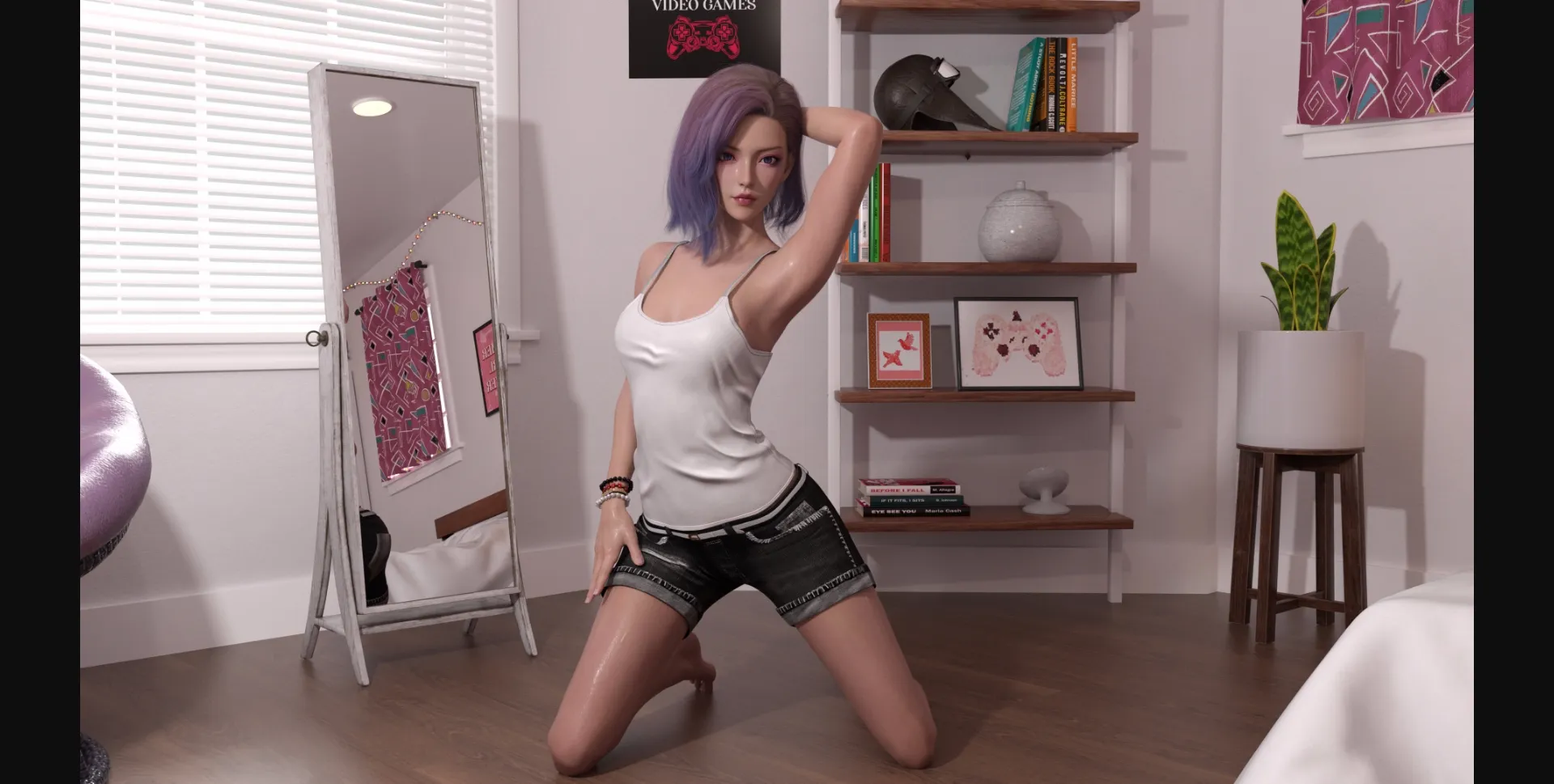 - Implement an equipment system where MC can now buy at the store and equip item at home. There’s only 1 item so far that will increase your charm.