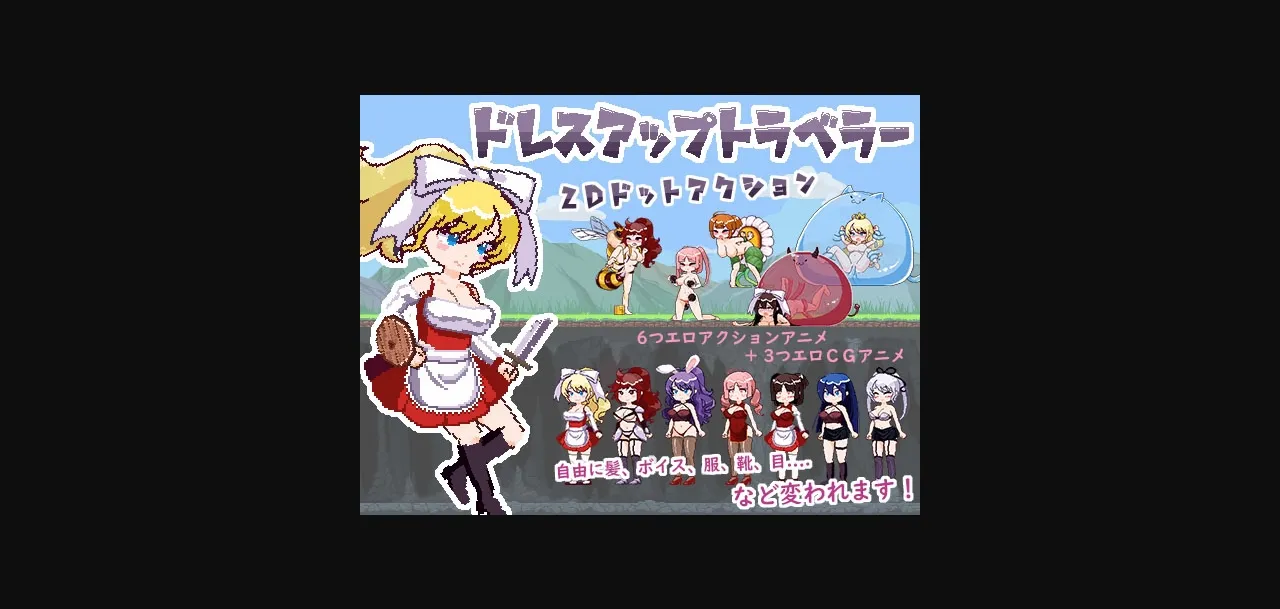 "Dress-Up Traveler" is a pixel style side scroll dress-up action game!