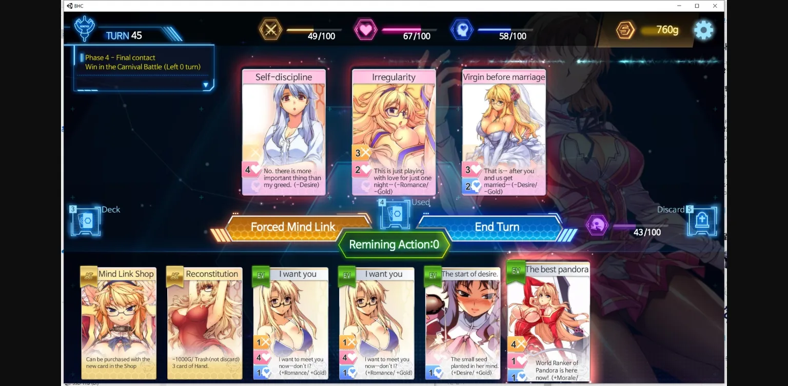 – After removing Heroine’s resistance psychological cards much as possible with the card in hand and raise the status of Heroine’s mind with the remaining card in your hand.
