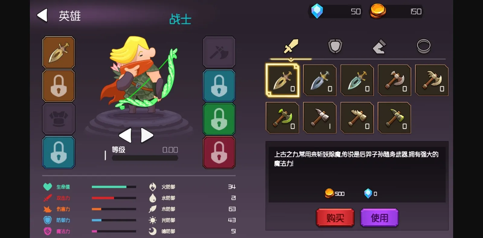 3. Equipment System — You can buy a lot of equipment to enhance your character.