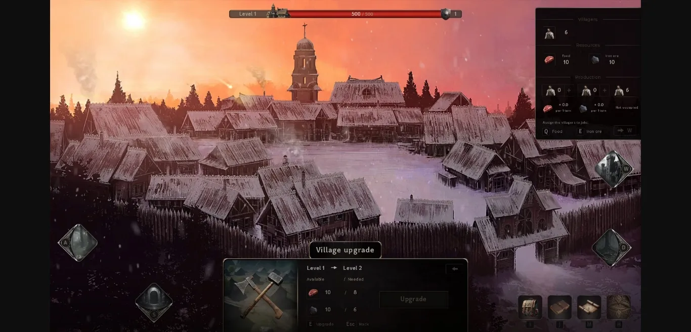 Your character will need to gain allies and equipment if they are to survive, as well as ensure the village will survive the winter. The snows are bitterly cold in Kemskaya Volost, but the fires and the beds are warm…