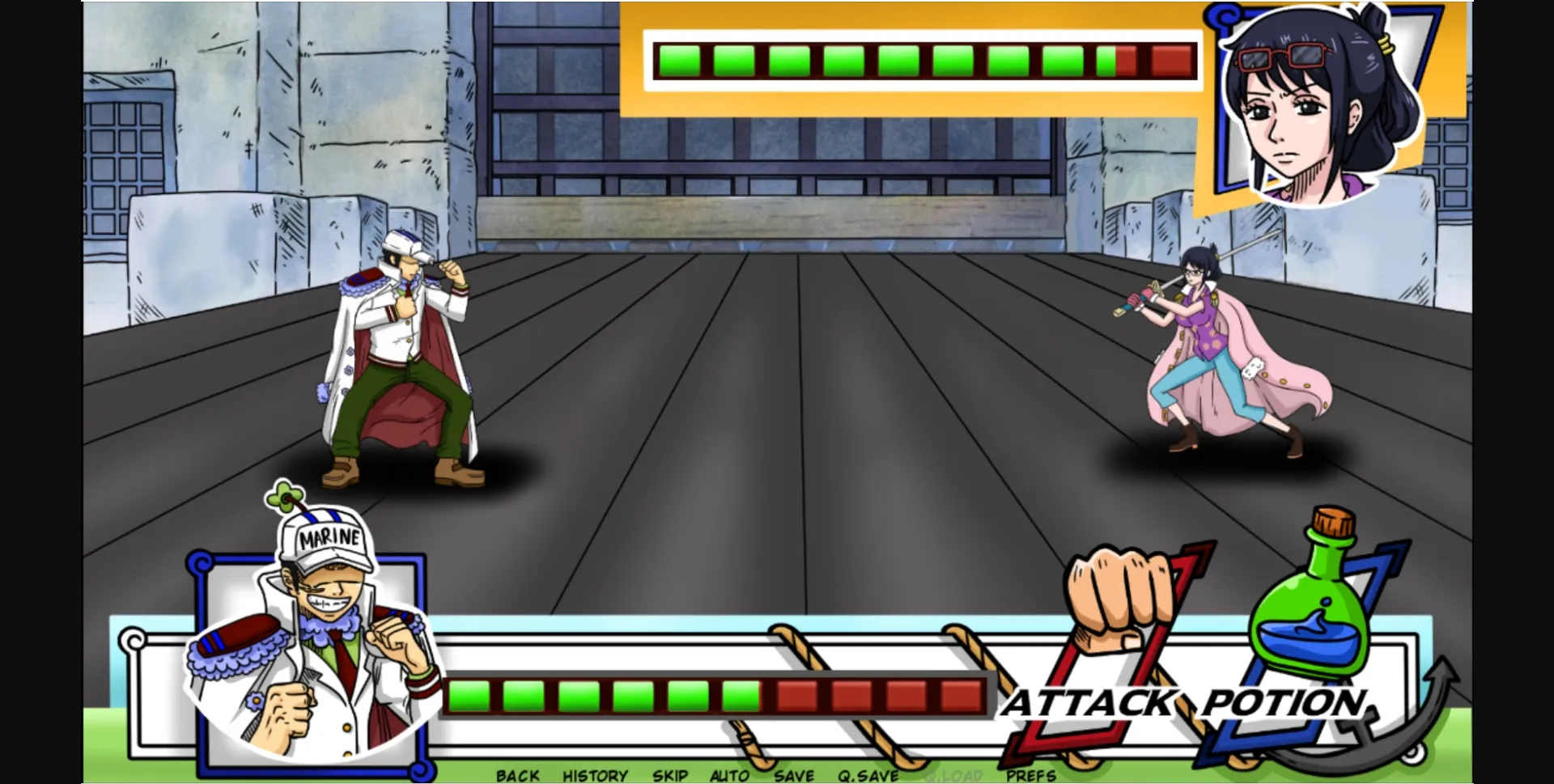 – Combat system, train your strenght to beat Tashigi and make her submit to you!