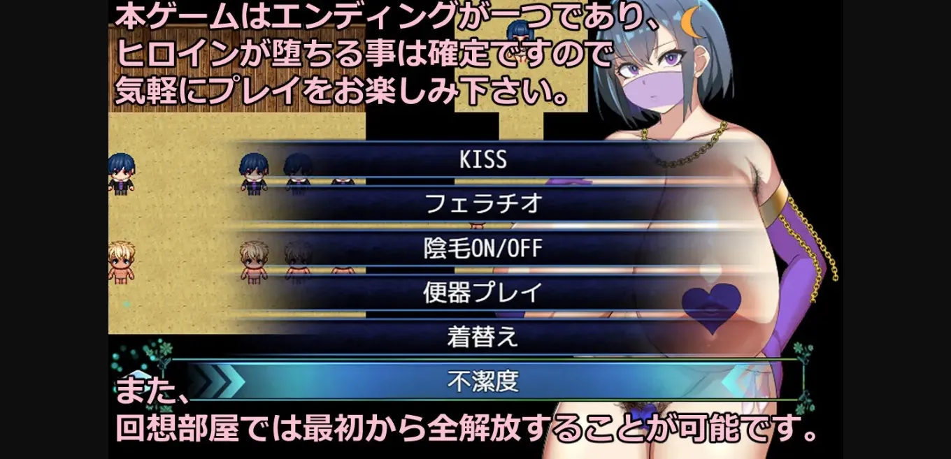 This game has only one ending, and it is certain that the heroine will fall, so please feel free to enjoy the game. In addition, it is possible to completely release from the beginning in the recollection room.
