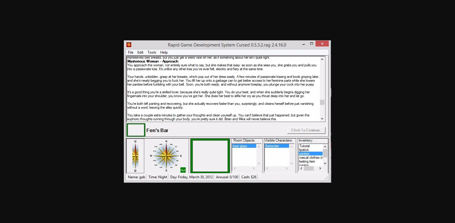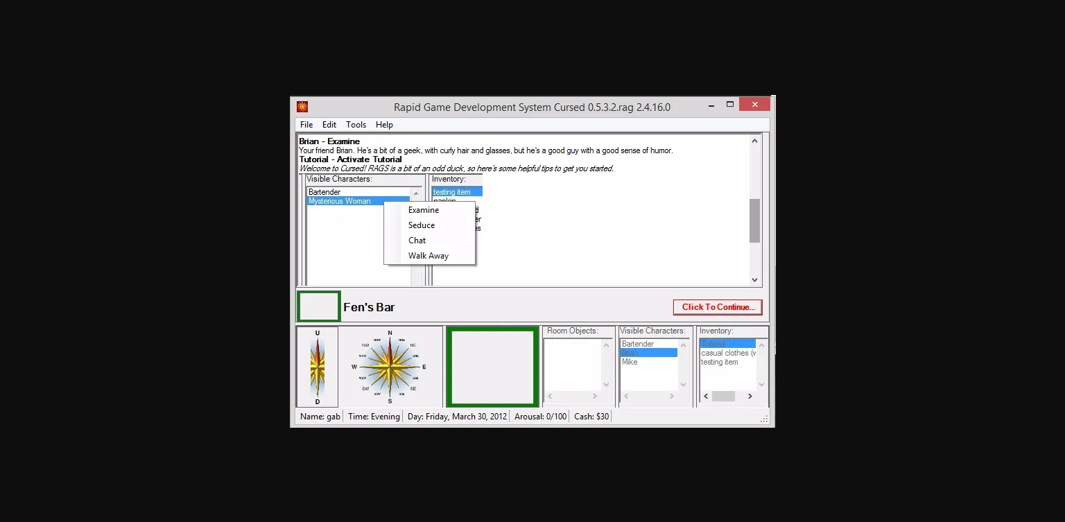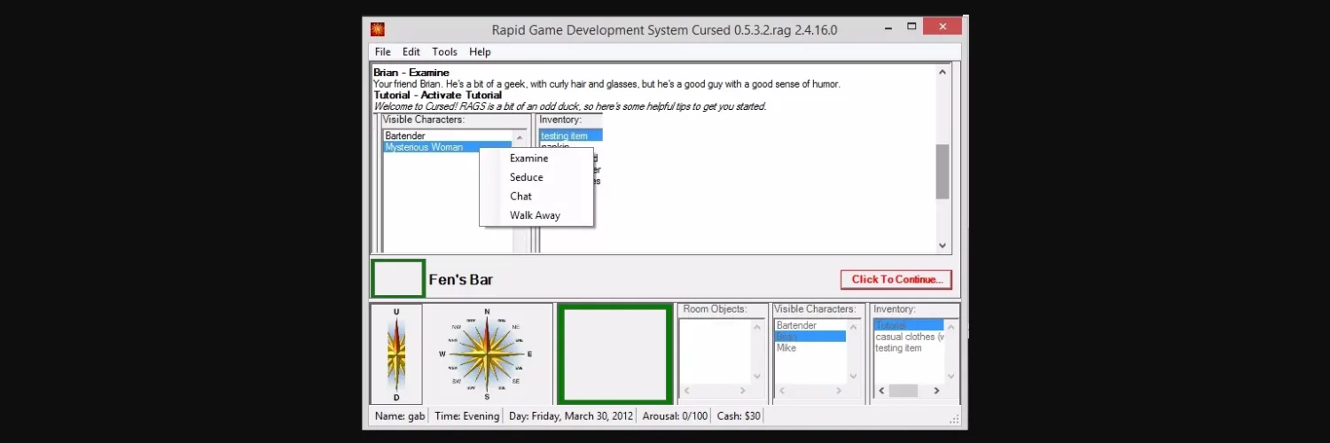 Cursed is a game I’m developing in RAGS, in an attempt to create a sort of life simulation in a limited engine. So, purposefully trying to stretch the limits of the engine, I guess.