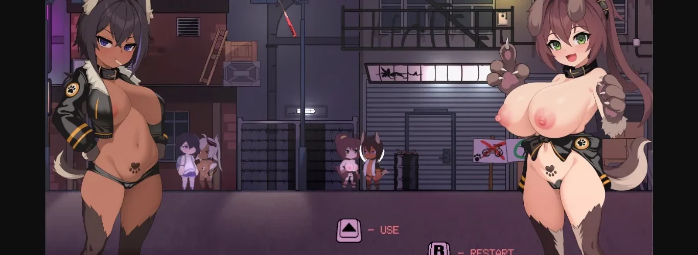 Alley Doggos is a short ADULT puzzle game about a pair of monstergirl dogs in heat. Use the environment to capture and violate anyone who dares to trespass into their territory.